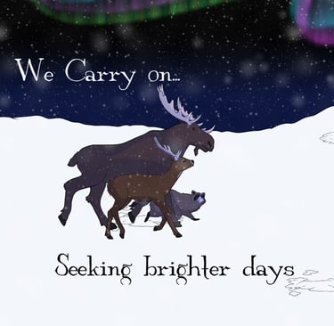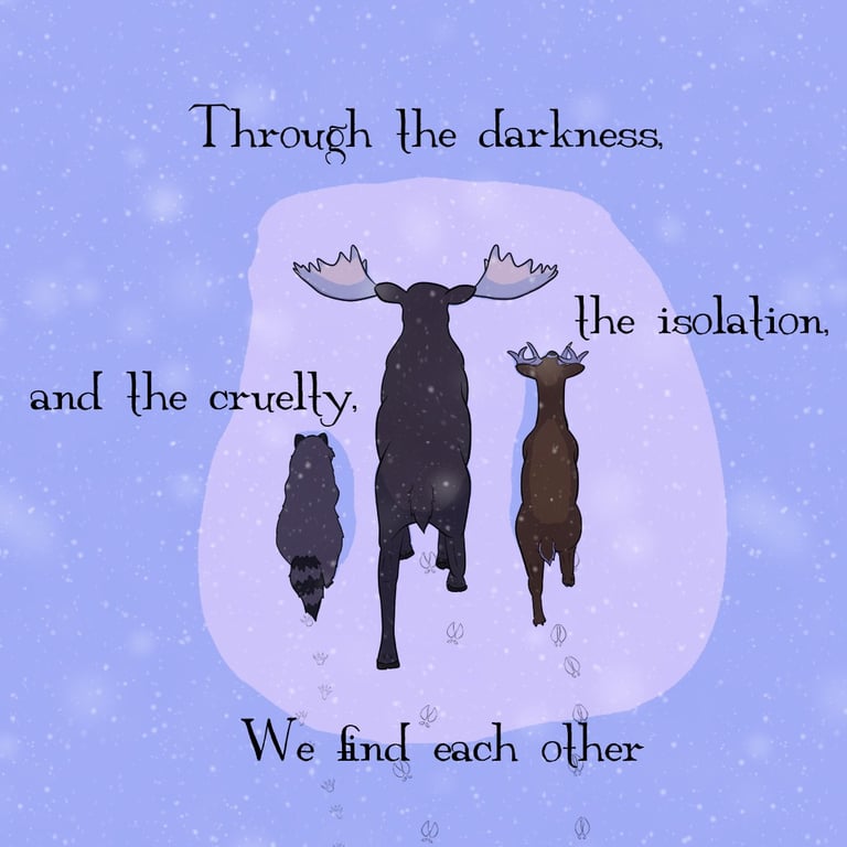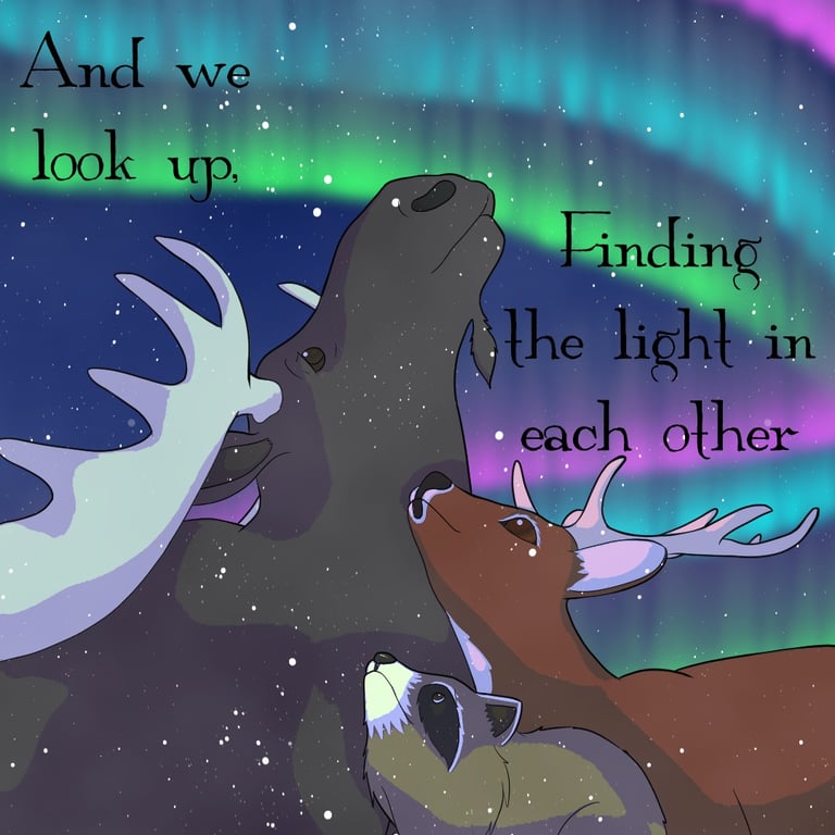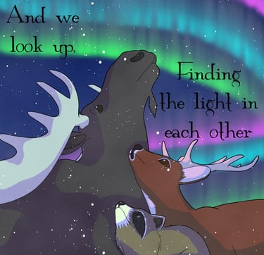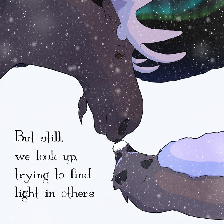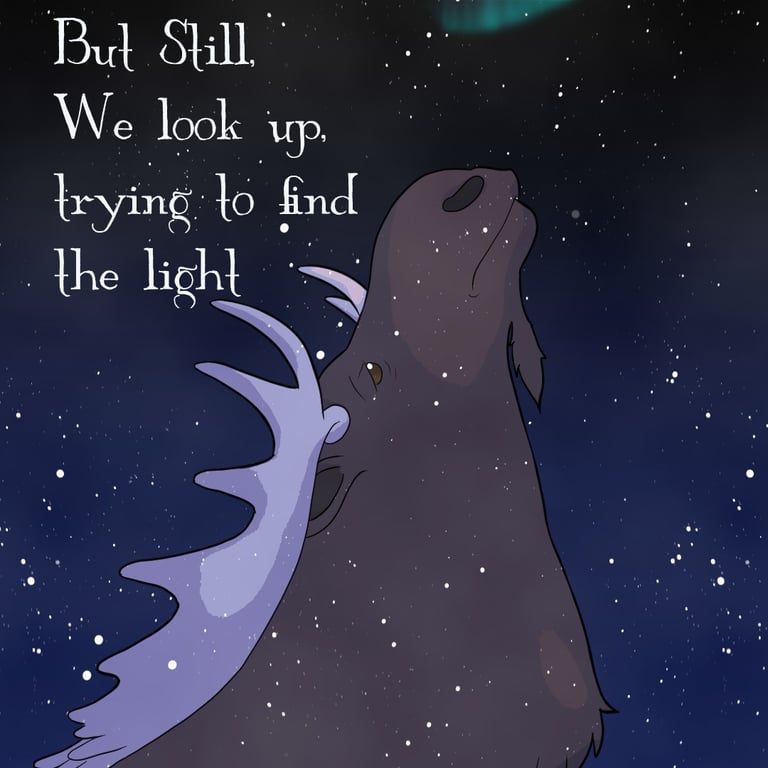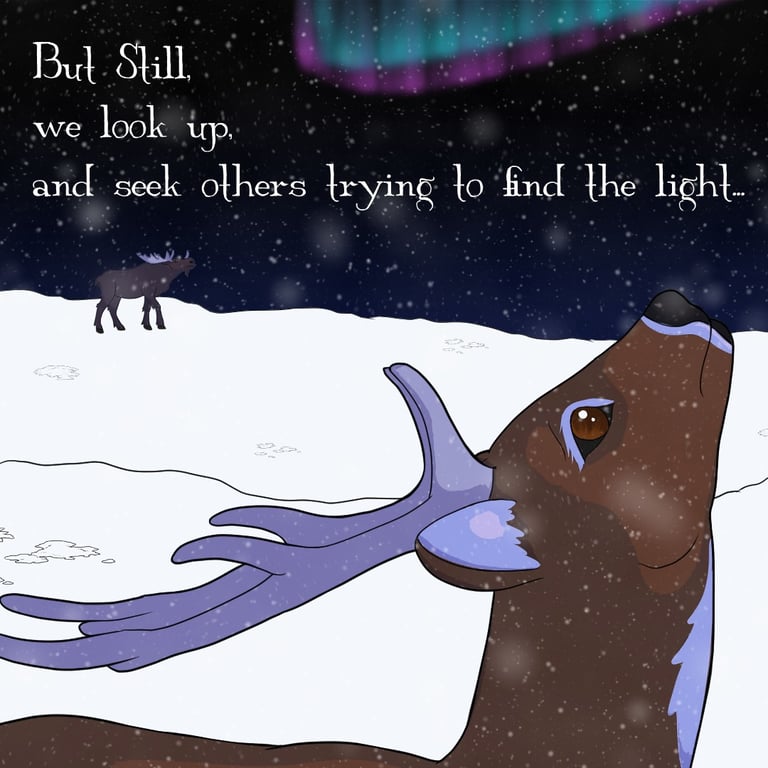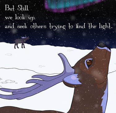 Find Light is a one shot comic I wrote in late 2024 around Christmas. The world seemed so dark and I was trying to find hope. I used 3 of my favorite animals from Minnesota.